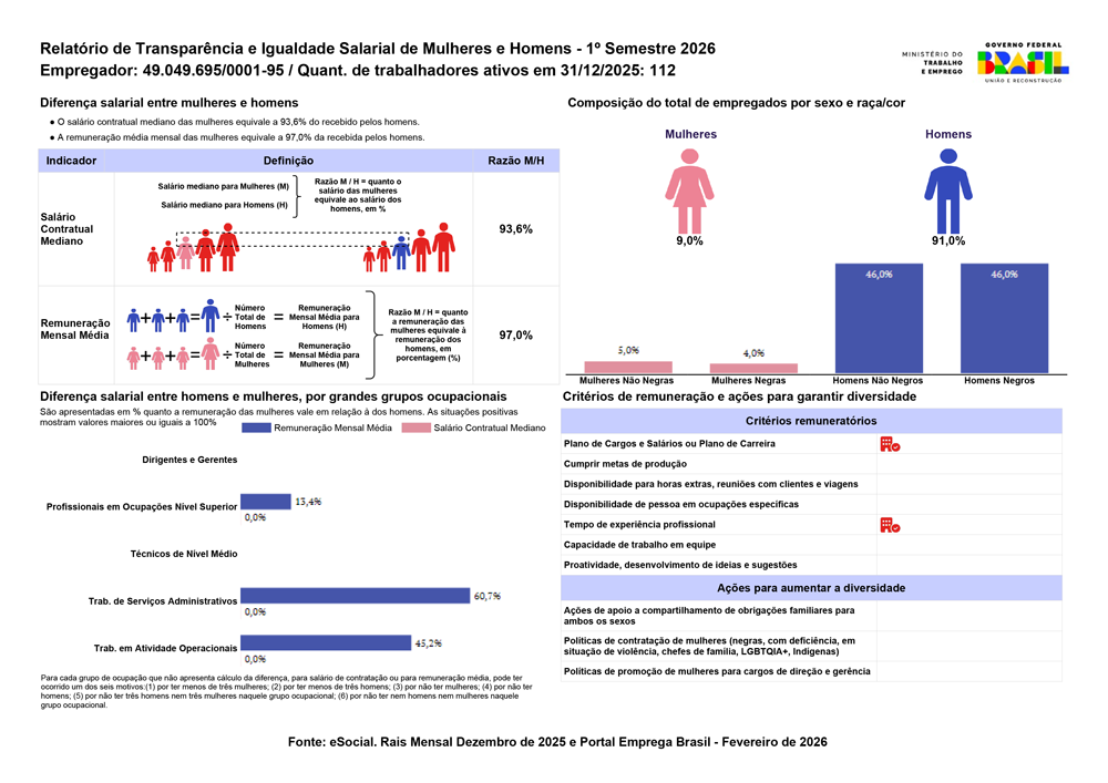 Este relatório está sendo publicado como parte das medidas de transparência exigidas por lei e será também vinculado ao sistema do Governo Federal para fins de comprovação e fiscalização pelo Ministério do Trabalho e Emprego.